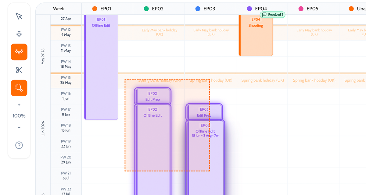 Use lasso, scissors, and multi-select when a replan affects a cluster of work.